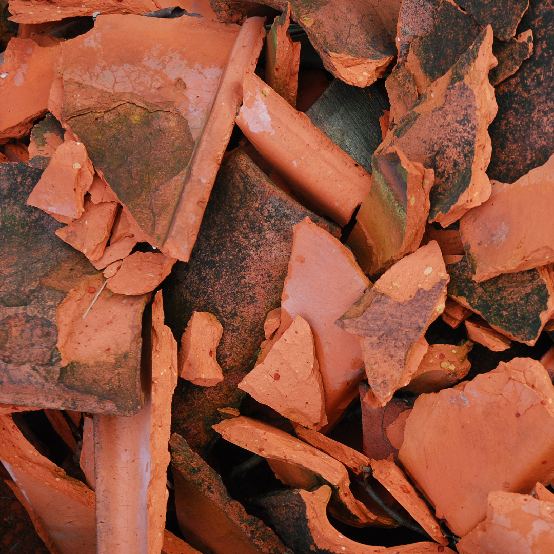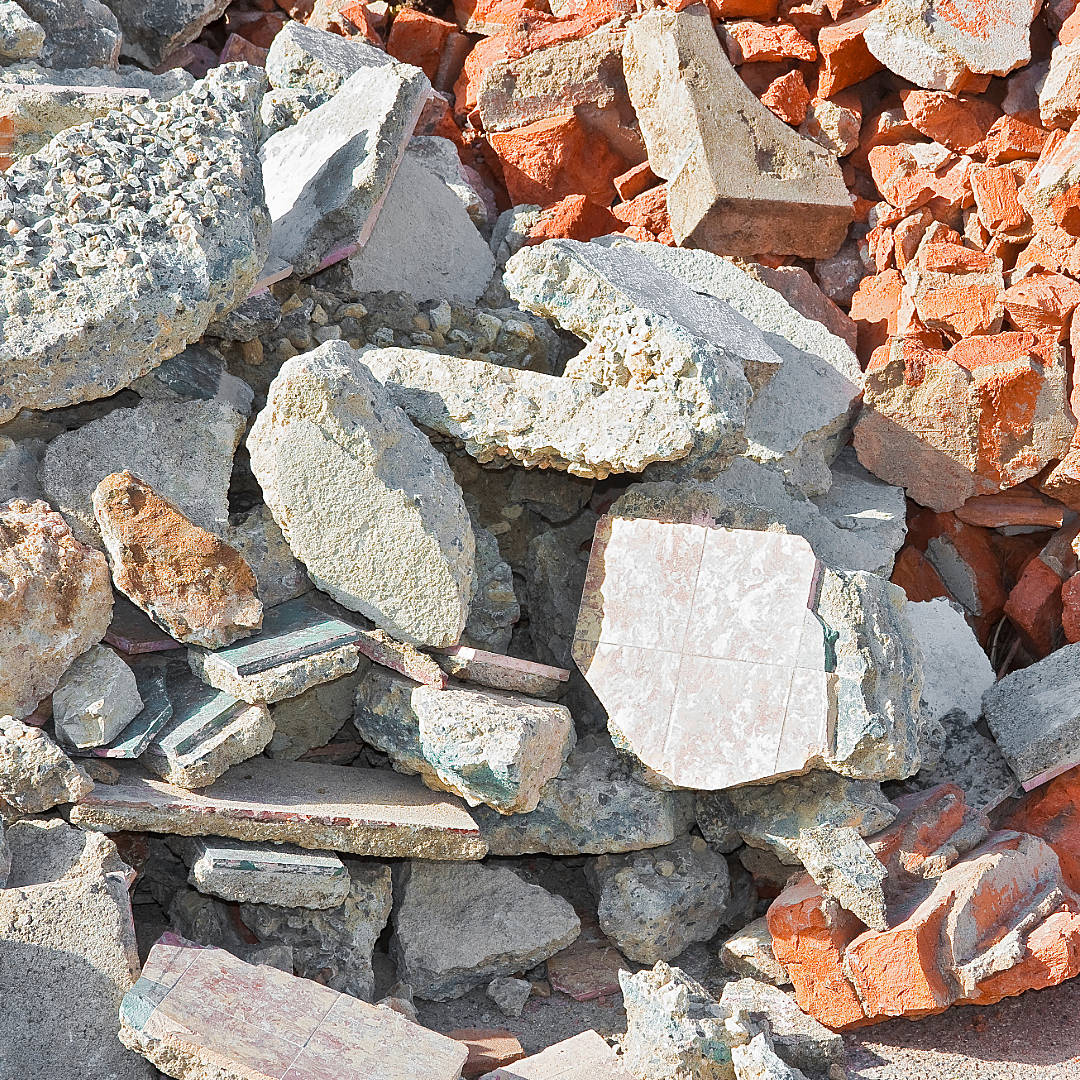 Ziegel, Mauerwerksabbruch, Bauschutt, Fliesen, Mörtel