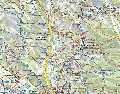 25 km: St. Magdalena - Lemberg - Geier - Sebersdorf - Geiseldorf - Unterdombach - Neusafenau - Lebing - Safenau - Hopfau - Noiberg - Steinbüchl - Mitterberg - Buchberg - Weinberg - St. Magdalena