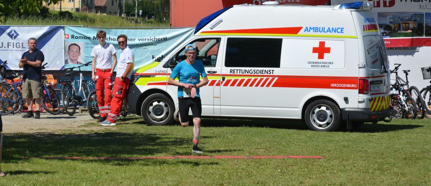 Foto: Der schnellste Läufer, Wolfgang Haubenwallner beim Zieleinlauf.