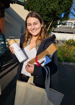 Fünf Teilnehmer wurden ausgelost, denen Bürgermeister Thomas Fitz am 18. Oktober den Gewinn überreichte. Die Gewinnerinnen und Gewinnern bekamen eine Fußach Thermosflasche. Perfekt für die kühlere Jahreszeit.