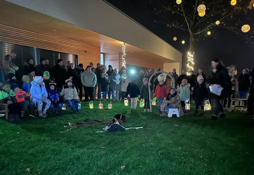 Mit ihren selbstgebastelten Laternen zogen die Kinder in den Garten ein und verwandelten ihn in ein wunderschönes Lichtermeer. Gemeinsam sangen sie Laternenlieder, und unsere Schulanfänger trugen stolz ihr Gedicht vor. Ein weiterer Höhepunkt des Abends war das von den Kindern vorgeführte Martinsspiel, das eindrucksvoll an die Geschichte des heiligen Martin erinnerte.