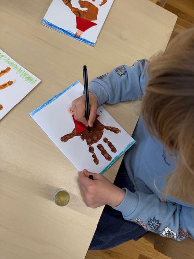 Am Dienstag, den 11. November 2025, fand im Kindergarten das traditionelle Laternenfest statt, das für Kinder, Eltern und Verwandte wieder ein ganz besonderes Erlebnis war. Schon einige Zeit zuvor hatten die Kinder im Atelier mit großer Begeisterung ihre eigenen Laternen gebastelt. Dabei konnten die Kinder zwischen zwei verschiedenen Laternen aussuchen, einer Igellaterne mit Transparentpapier und einer Gänselaterne mit Federn. Mit viel Fantasie und liebevollen Details entstanden dabei kleine Kunstwerke, die im Dunkeln wunderschön leuchteten. Für das Fest gestalteten die Kinder selber Einladungskarten.