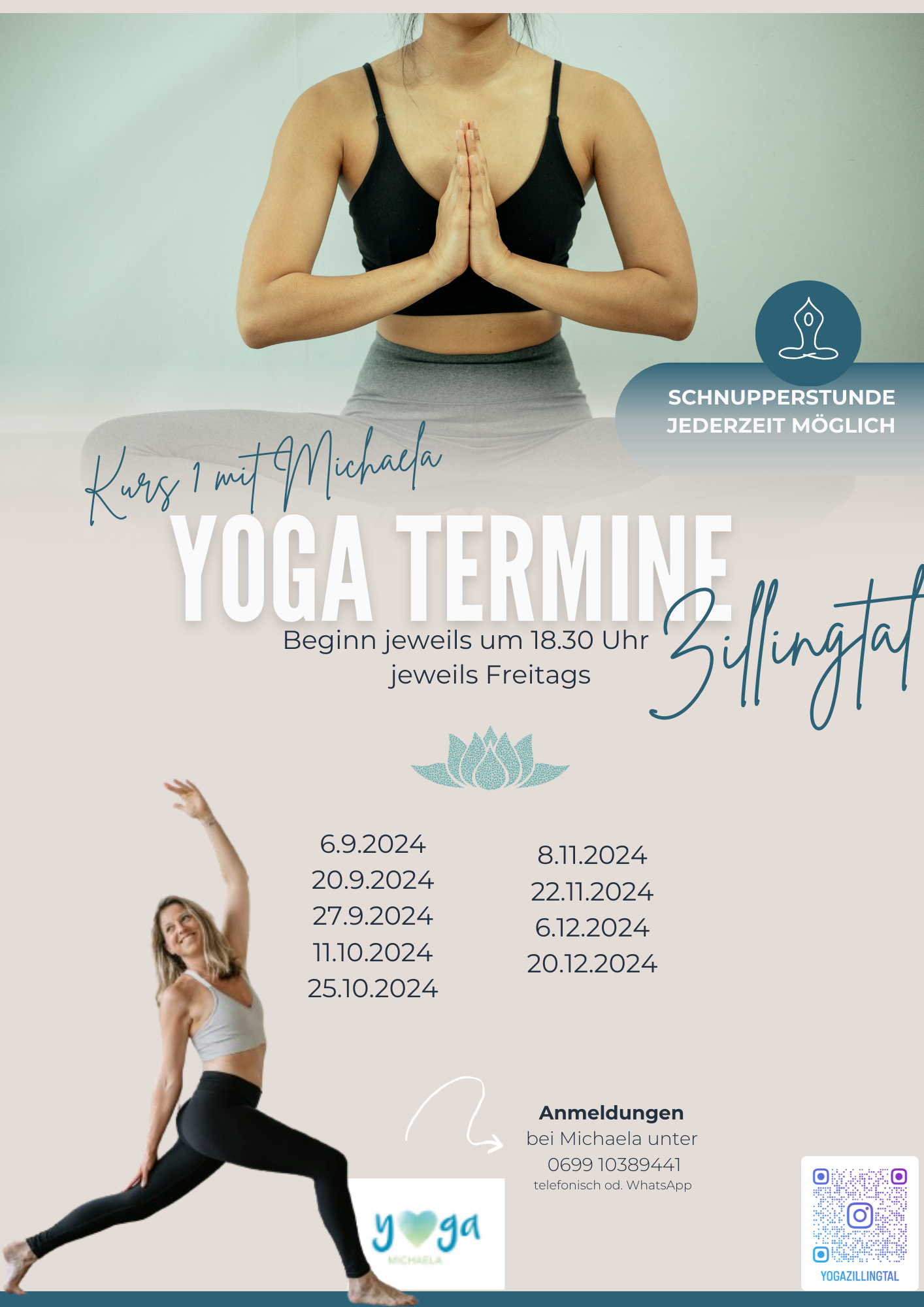 Kurs 1 mit Michaela startet am 4.9.2024 (jeweils Freitags) und
