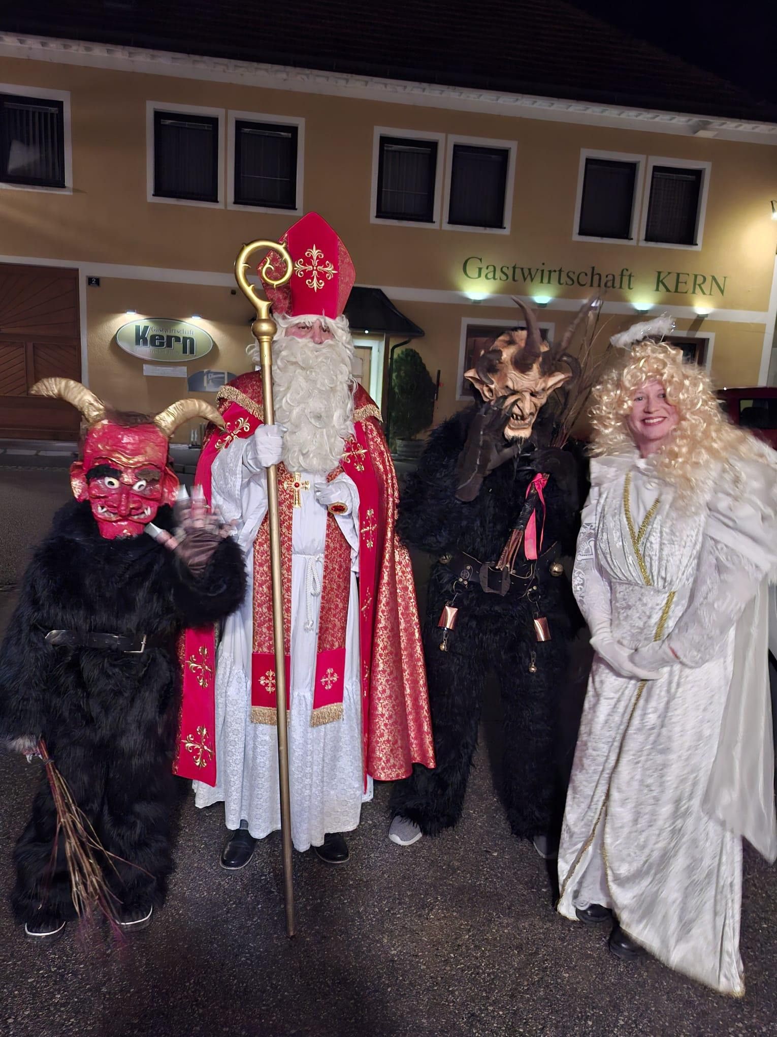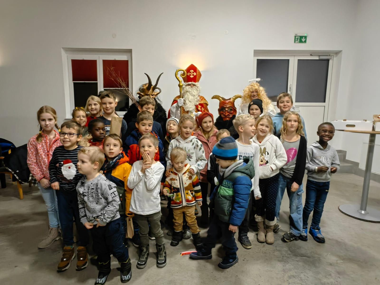Der Nikolaus kam nicht allein – er wurde von einem Engel und zwei Krampussen begleitet. Besonders der kleine Krampus sorgte bei den Kindern für große Begeisterung und strahlende Augen.