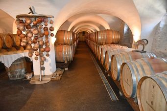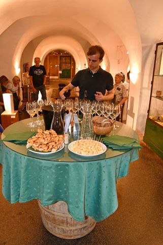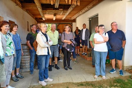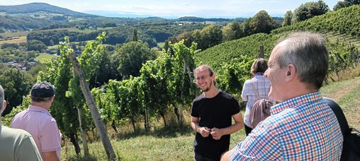 Nach der Mittagspause spazierten wir durch die Weingärten runter zum Weingut der Familie Winkler-Hermaden. Christof führte uns durch die Keller, erklärte uns einiges über die Weintrauben, die Lese, die Verarbeitung, sowie die Weinherstellung, bevor es wieder zurück in den Verkostungsraum ging.