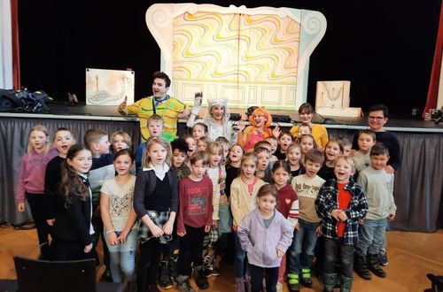 Kurz vor den Semesterferien besuchten die Schüler der 1., 2. und 4. Klasse der Volksschule das Kindermusical „Die Schatztaucherin“ im Stadtsaal Bruck an der Mur. Gemeinsam mit dem “Theater Heuschreck” begaben sich die Kinder der Volksschule auf die Reise zum Regenbogenstein. Ein tolles, abenteuerliches Musical mit viel Gefühl und einer schönen Botschaft: In jedem von uns liegt ein Schatz verborgen!