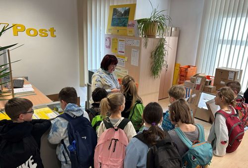 Kurz vor den Semesterferien besuchten die Schüler der 3.a und 3.b Klasse Volksschule das Gemeindeamt in St. Katharein. Bürgermeister Hubert Zinner empfing sie herzlich und beantwortete gemeinsam mit Amtsleiterin Birgit Kaiser-Hartner zahlreiche Fragen. Mit Frau Mühlbauer lernten die Kinder das Postamt kennen und jeder durfte eine Postkarte abstempeln und verschicken. Zum Schluss gab Frau Fürpaß eine kurze Führung durch die Bücherei „Hollerbusch“ und las ihren kleinen Besuchern eine liebevolle Geschichte vor.