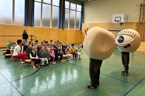 Kurz nach den Semesterferien fand im Turnsaal des Schulzentrums Tragöß - St. Katharein das Mitmachtheater „Augen auf die Straße“ statt. Die Schüler der 1. und 2. Klasse Volksschule lernten und wiederholten wichtige Regeln für das richtige und sichere Verhalten am Schulweg. Dieses ganz besondere Theater war eine gute Vorbereitung auf den Besuch der Polizei Kapfenberg, die mit den Kindern der 2. Klasse zum Thema Verkehrserziehung arbeitete und auf das richtige Verhalten an der Bushaltestelle einging.
