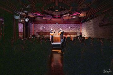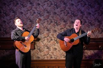 Zwei akustische Gitarren und zwei brilliante Musiker, mehr brauchte es an diesem Abend nicht, um das Publikum von der ersten Sekunde an in den Bann zu ziehen. Bryan berührte unsere Seele mit seiner sonoren Baritonstimme, erfrischte uns mit seinen launigen Geschichten über seine Erlebnisse und Eindrücke, die er in der Stadt Neapel sammeln durfte und übersetzte die Liedtexte sogar für uns. Dabei erfuhren wir, dass es keine Noten für diese alten neapolitanischen Lieder von Mario Gangi und Fausto Cigliano gegeben hatte und dass sie diese erst mühselig von alten Aufnahmen transkribieren mussten. Bryan erzählte uns von Besuchen bei den Witwen der Künstler und dass diese ihnen die Originalgitarren überlassen hätten. Eine gute Entscheidung, denn nirgendwo wären sie besser aufgehoben als bei Václav, der das Publikum mit seinem wahrhaft virtuosen Gitarrenspiel restlos überzeugte, und bei Bryan.