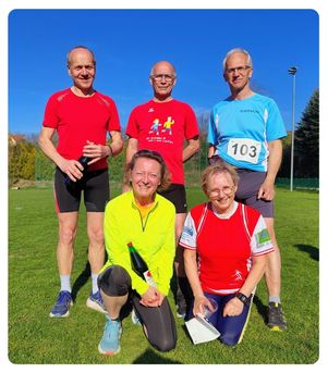 8 Teilnehmer beim 6 km Wald- und Wiesenlauf in Spannberg. Vier der teilnehmenden Läufer konnten Pokale mit nach Hause nehmen: