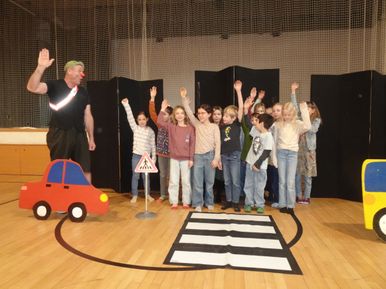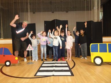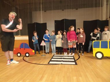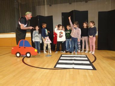 Am 06.02. besuchte der Verkehrsclown Schlotterhos die 1. und 2. Klassen zur Verkehrserziehung. Mit viel Humor erklärte er den Kindern die wichtigsten Verkehrsregeln. Dabei wurde viel gelacht und ganz nebenbei lernten alle, wie man sich sicher im Straßenverkehr verhält.