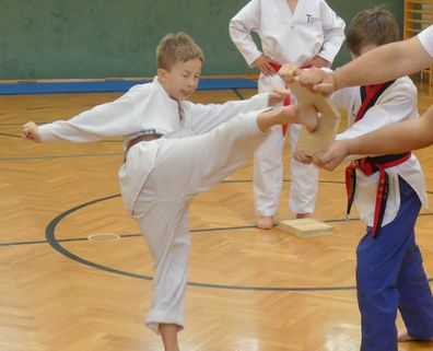 Jetzt im Rückblick und nach den vielen Prüfungen, die ich seither gemacht habe, muss ich lachen, denn wir haben damals hauptsächlich zwei Stellungen, den Vorwärts-Kick und den geraden Fauststoß trainiert. Also die minimalen Grundlagen. Aber das Training war trotzdem abwechslungsreich, denn es startete mit einem tollen Laufspiel, dann kam die Technikeinheit, und abschließend tollten wir durch einen bunten Parkour an Gerätschaften, wo wir uns nochmals auspowern konnten.“