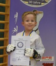 „Es war ein ganz tolles Erlebnis, das erste Mal, um eine Medaille zu kämpfen. Klar hatten wir vorher im Training Wettkampftechniken gelernt und auch schon mit der gesamten Schutzausrüstung geübt. Aber es ist halt doch etwas ganz anderes, wenn man dann auf der Matte steht, und alle feuern einen an.