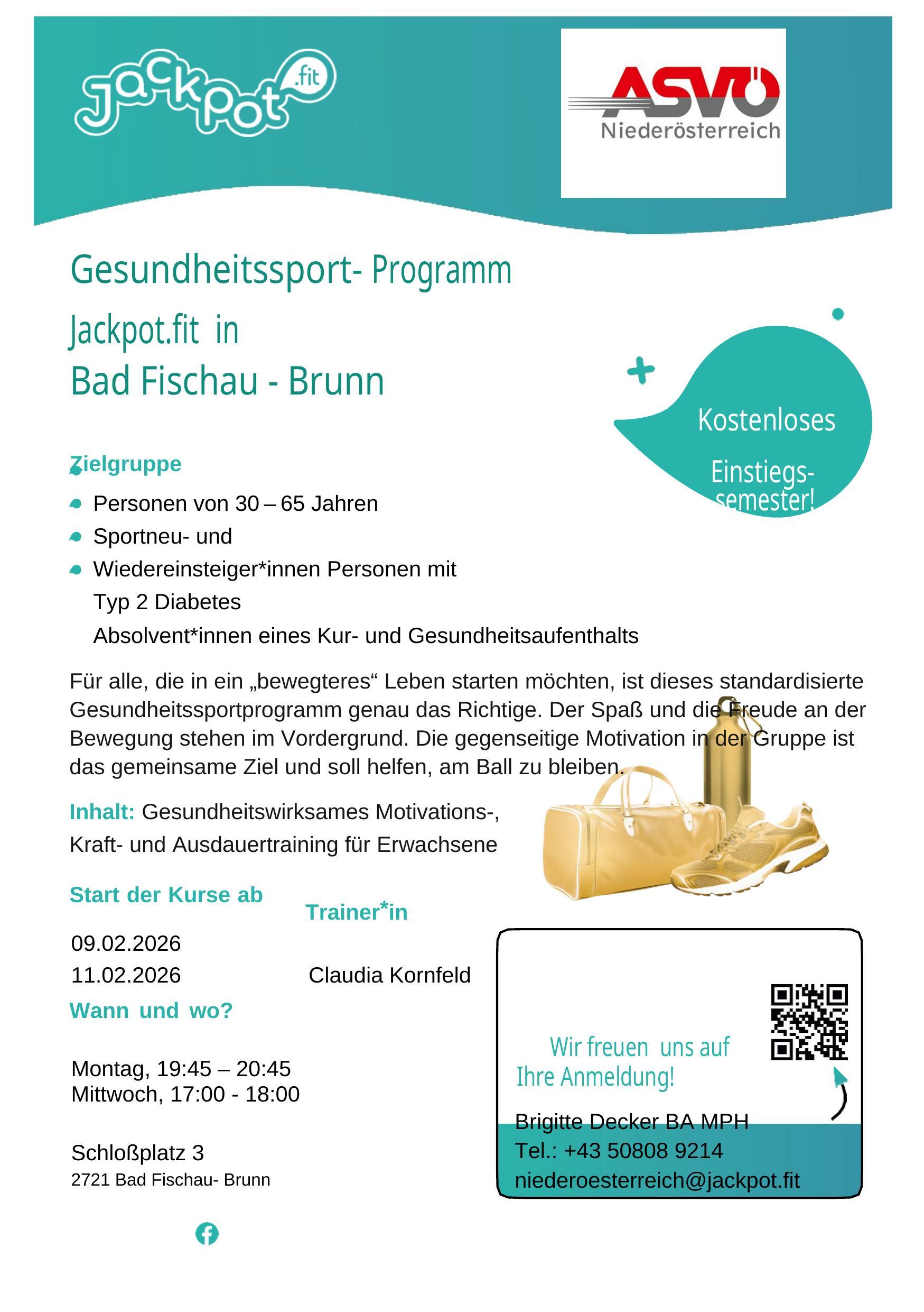 Gesundheitssport- Programm Jackpot.fit in Bad Fischau - Brunn.