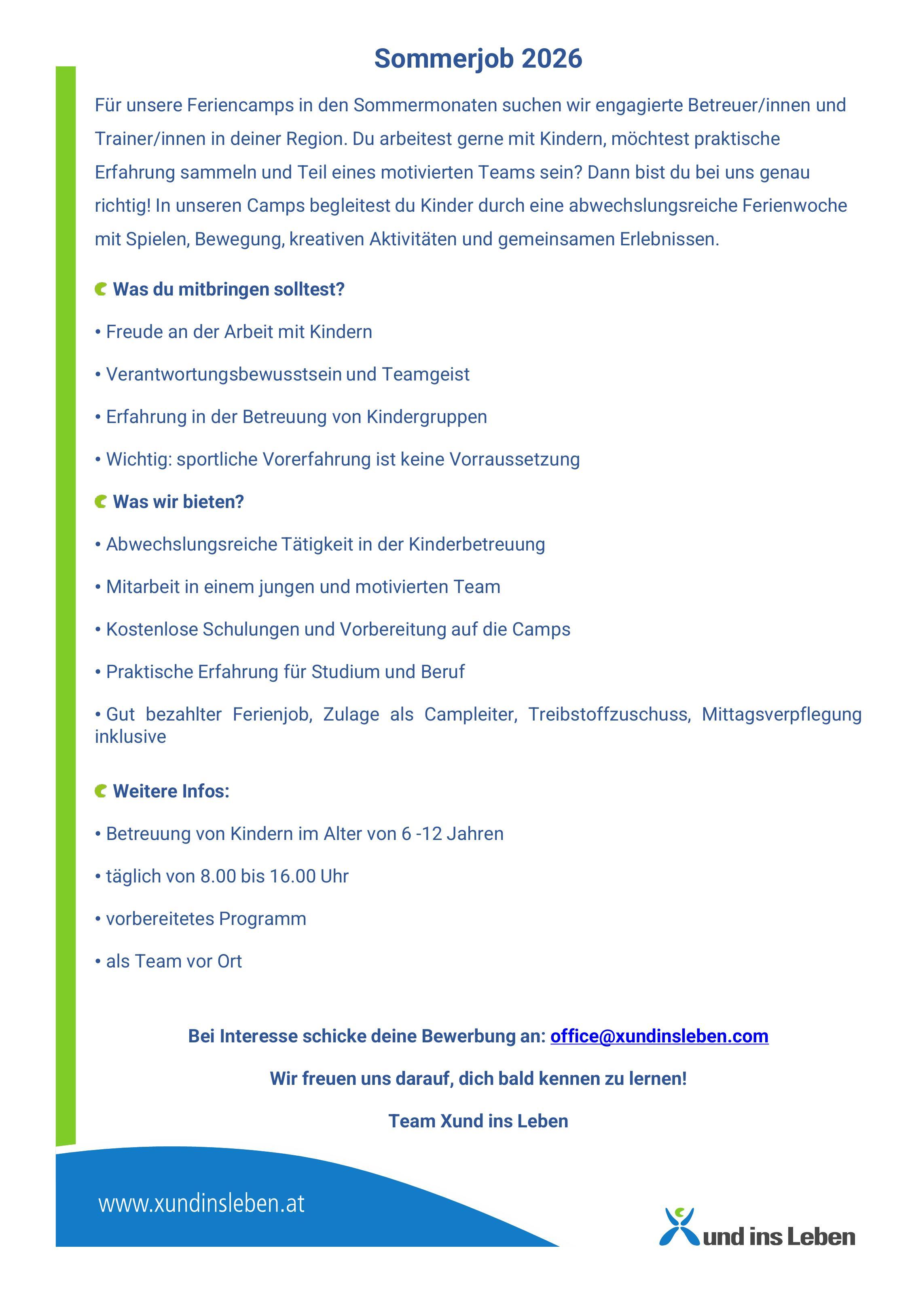 Bewerbung an: office@xundinsleben.com