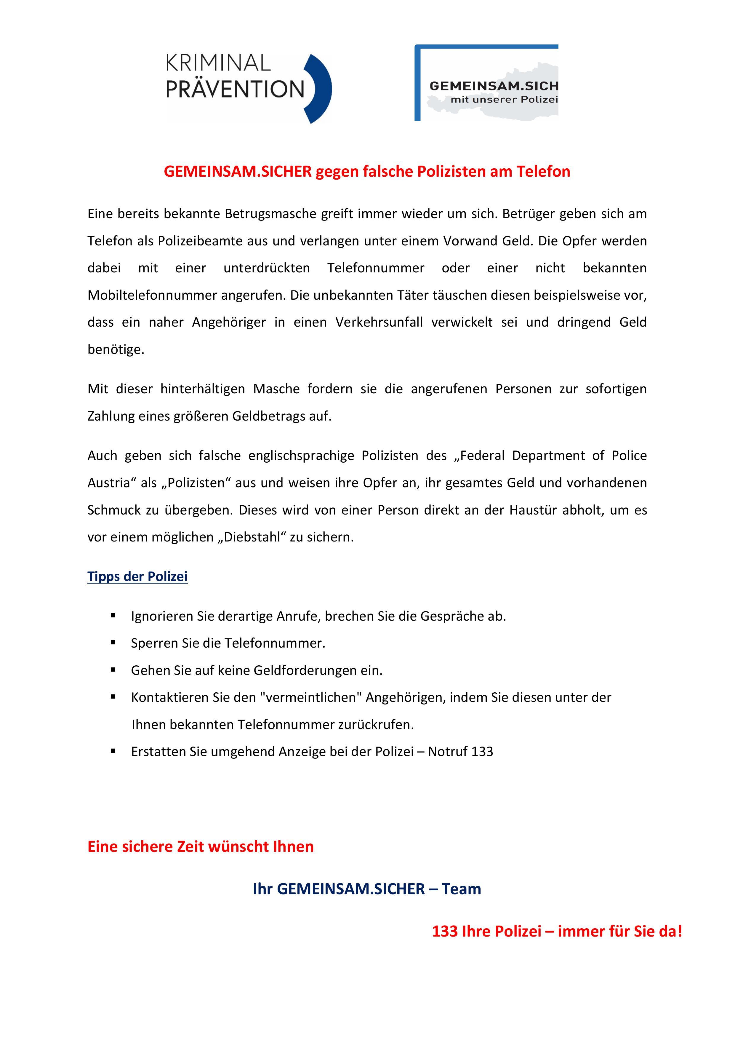 GEMEINSAM.SICHER gegen falsche Polizisten am Telefon