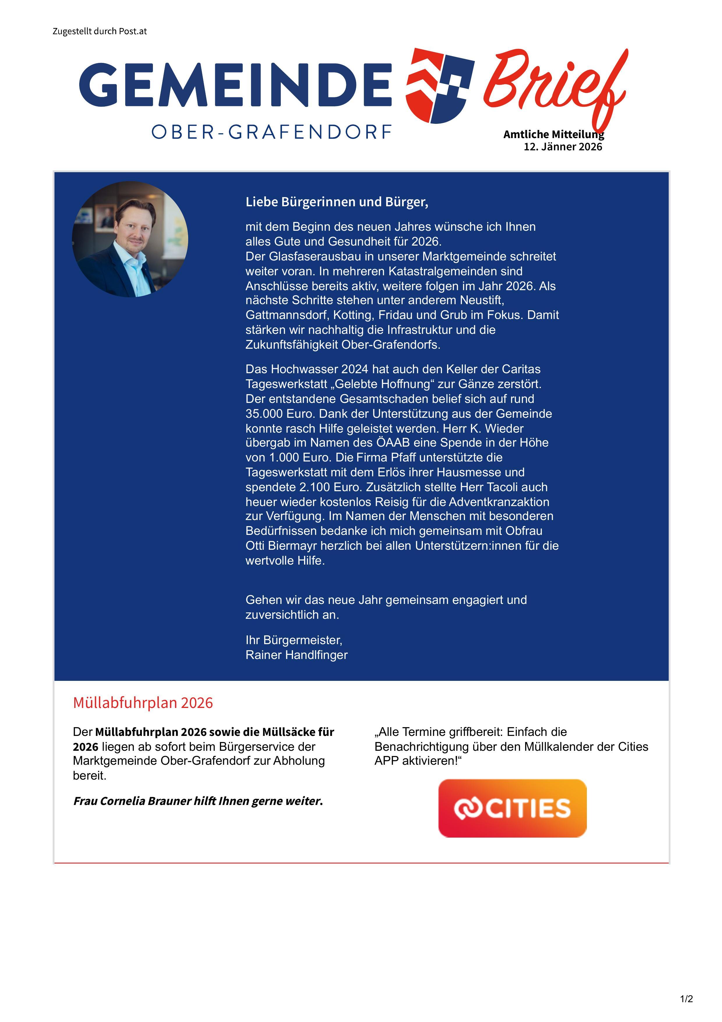 Spatenstichfeier für den Neubau des Gemeindezentrums in Altlengbach ALTLENGBACH: Am 8. Jänner 2026 fand in Altlengbach die Spatenstichfeier für das neue Gemeindezentrum statt.