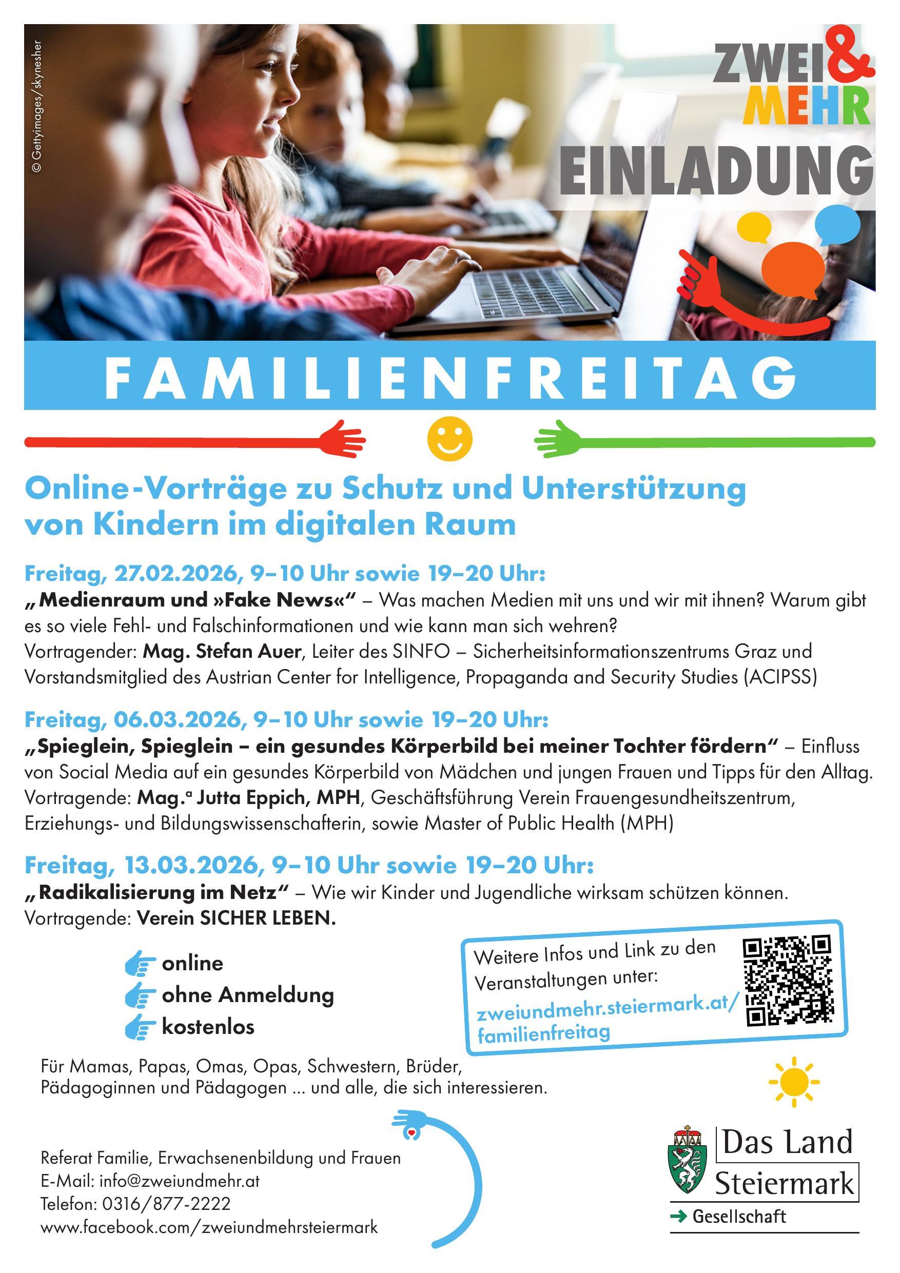 Weitere Infos und Link zu den Veranstaltungen unter: zweiundmehr.steiermark.at/familienfreitag
