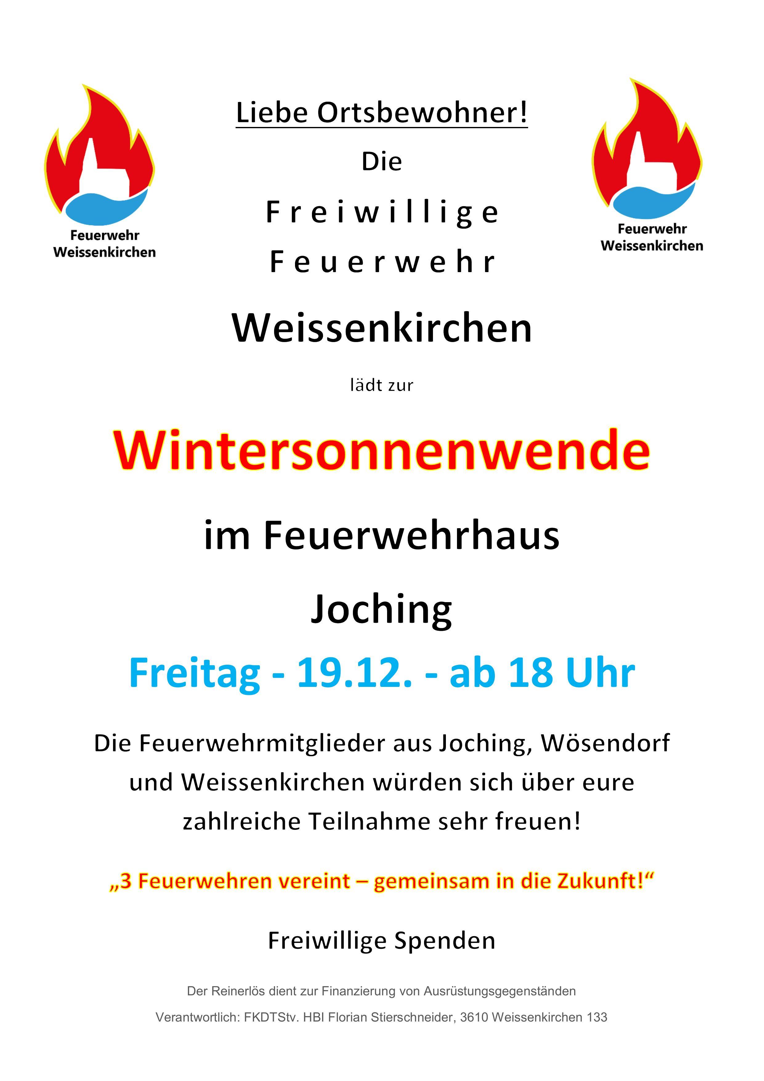 vor 3 WochenGlühweinstand FF WösendorfSa., 29. Nov. 2025, 15:00 Marktplatz(Wösendorf in der Wachau), 3610, Wösendorf in der Wachau, Weißenkirchen in der Wachau, Krems, Niederösterreich, AUTVeranstaltung von Freiwillige Feuerwehr der Marktgemeinde Weißenkirchen