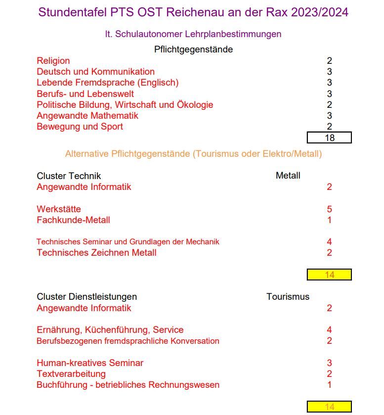 Stundentafel