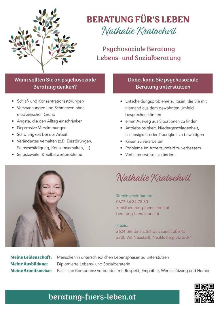 Psychosoziale Beratung, Lebens- und Sozialberatung, Nathalie Kratochvil
