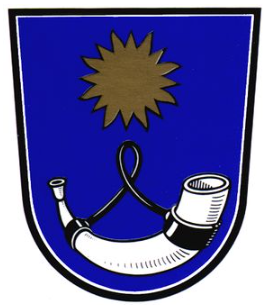 In Blau oben eine goldene Sonne, unten ein nach links gewendetes silbernes Hifthorn mit schwarzen Beschlägen und schwarzer Schnur.